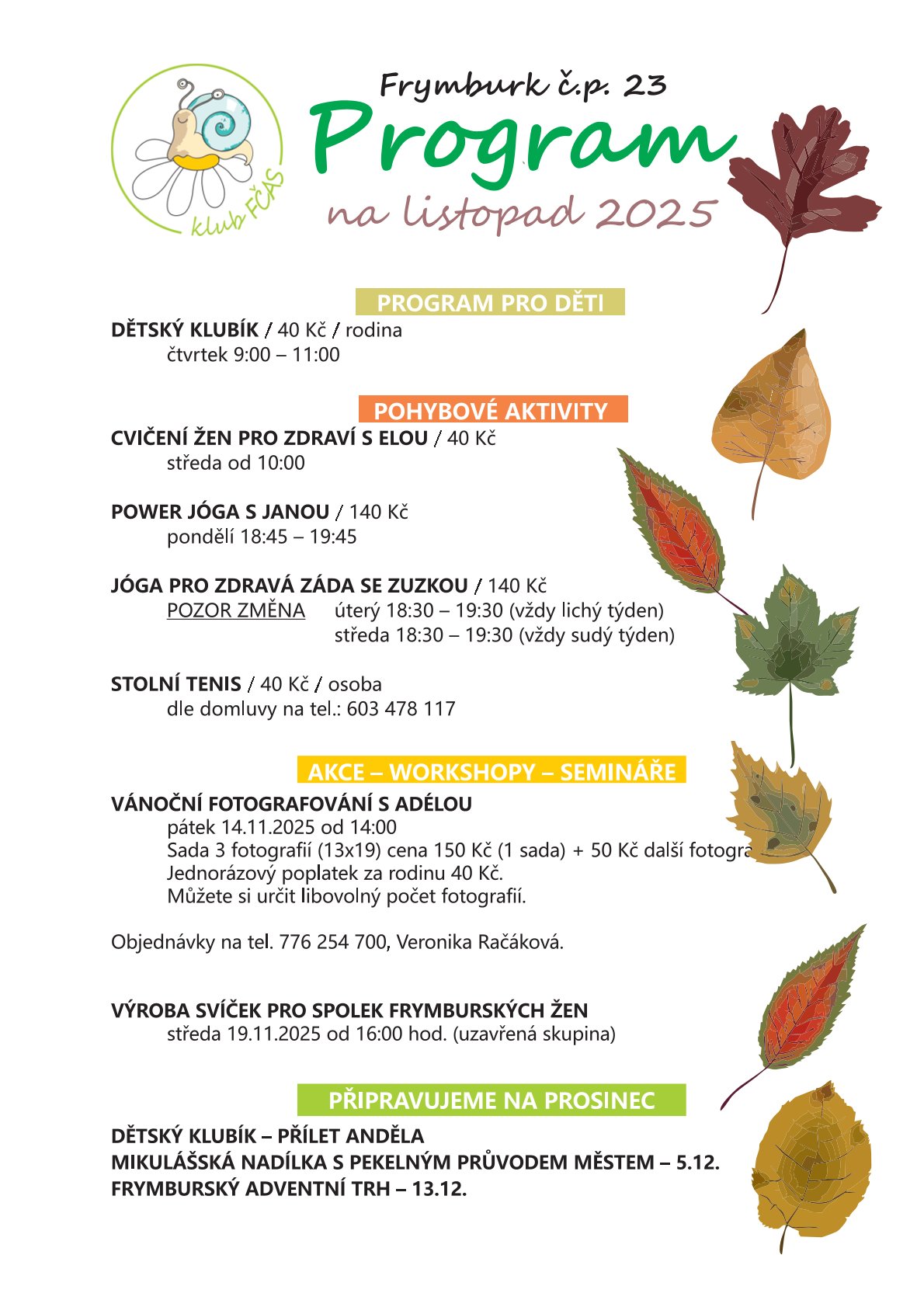 V listopadu bude ve FČASu Vánoční focení pro děti i rodiny. Zastavte se v dětském klubíku nebo si přijďte zacvičit. Těšíme se!